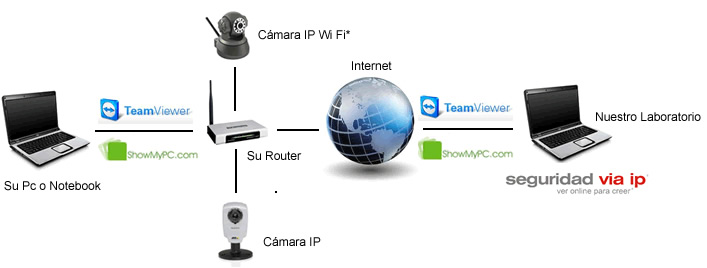 Desde nuestro laboratorio, y sin importar donde usted se encuentre, podemos brindarle soporte técnico e instalación de cámaras ip, o cámaras ip wi fi a traves de Internet sin necesidad de asistir a su domicilio: